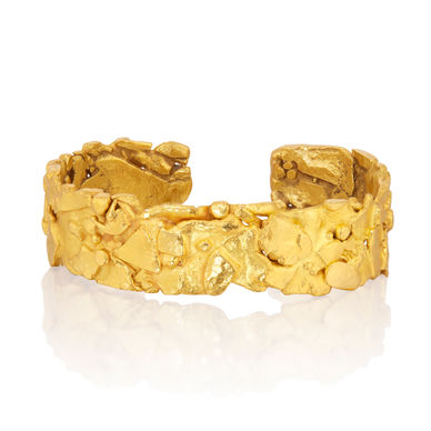 The mesmerizing effect of the abundance of gold will make you want this cuff to loving embrace your wrist.22K gold bracelet, 37dwts
